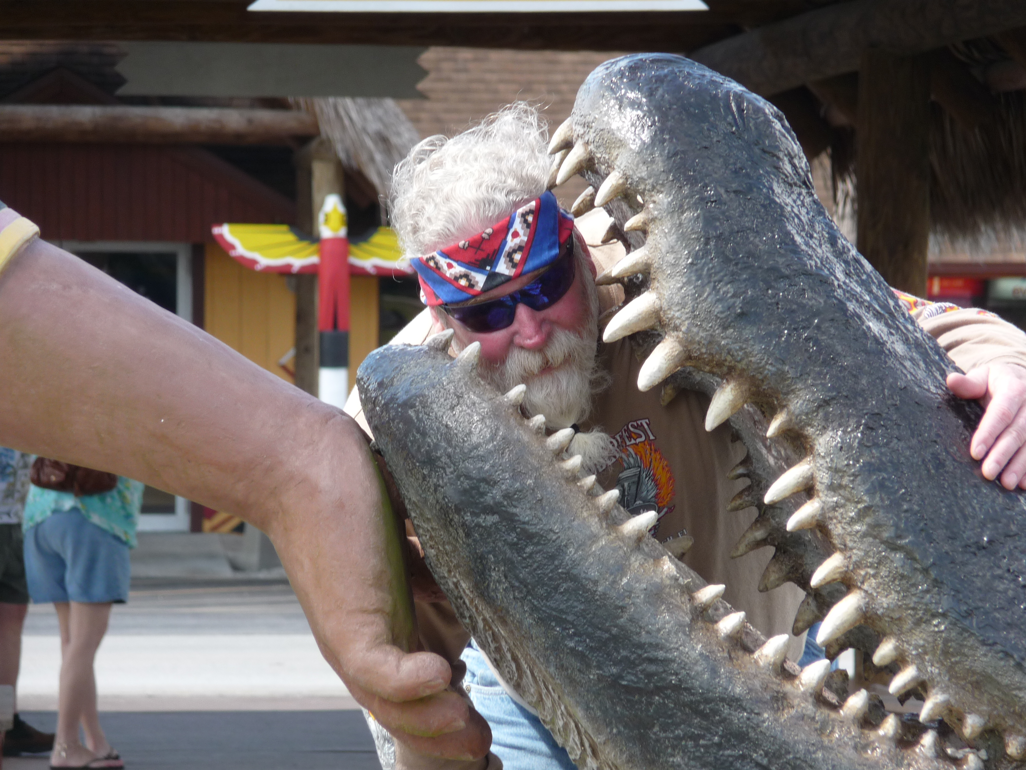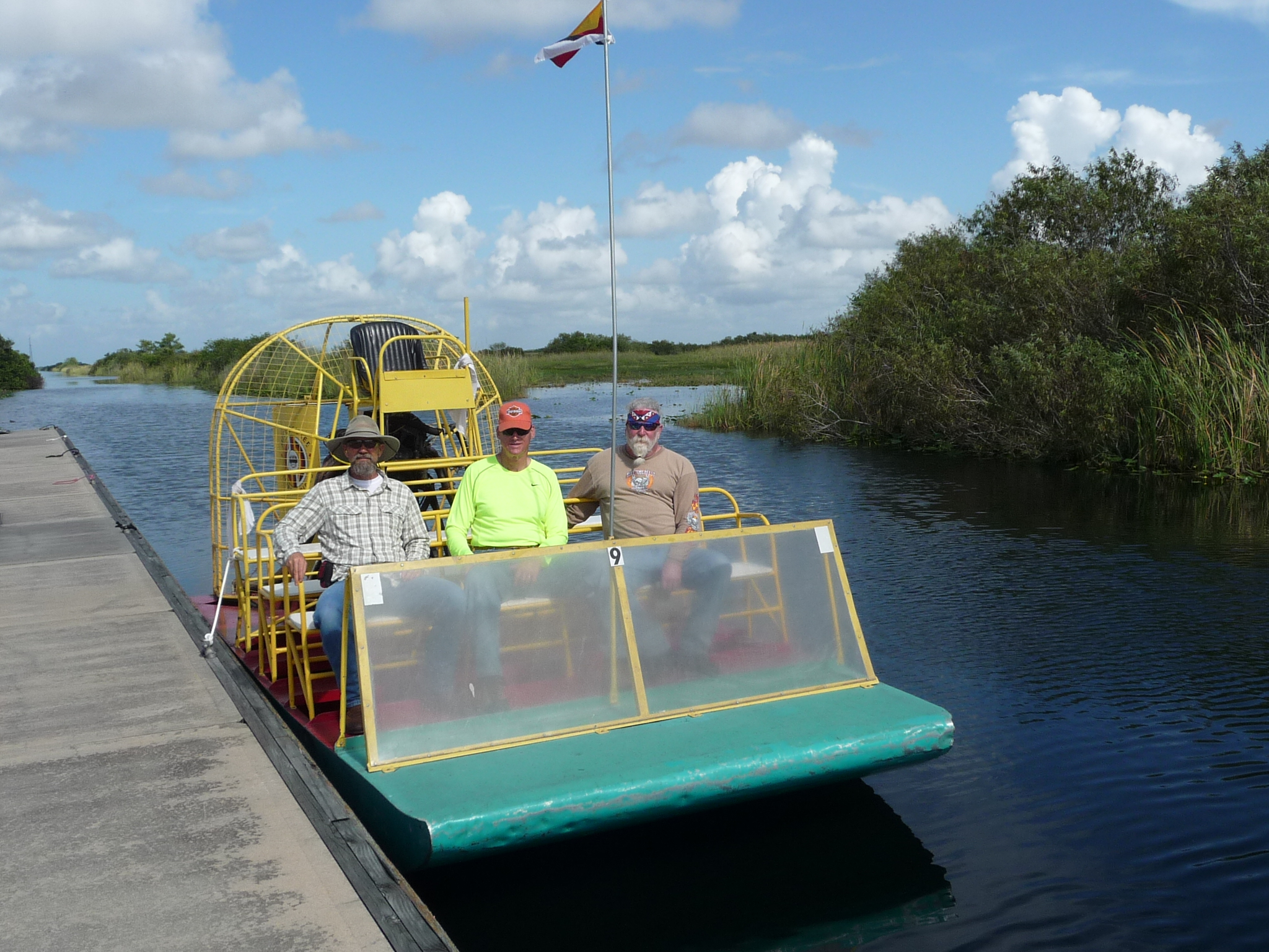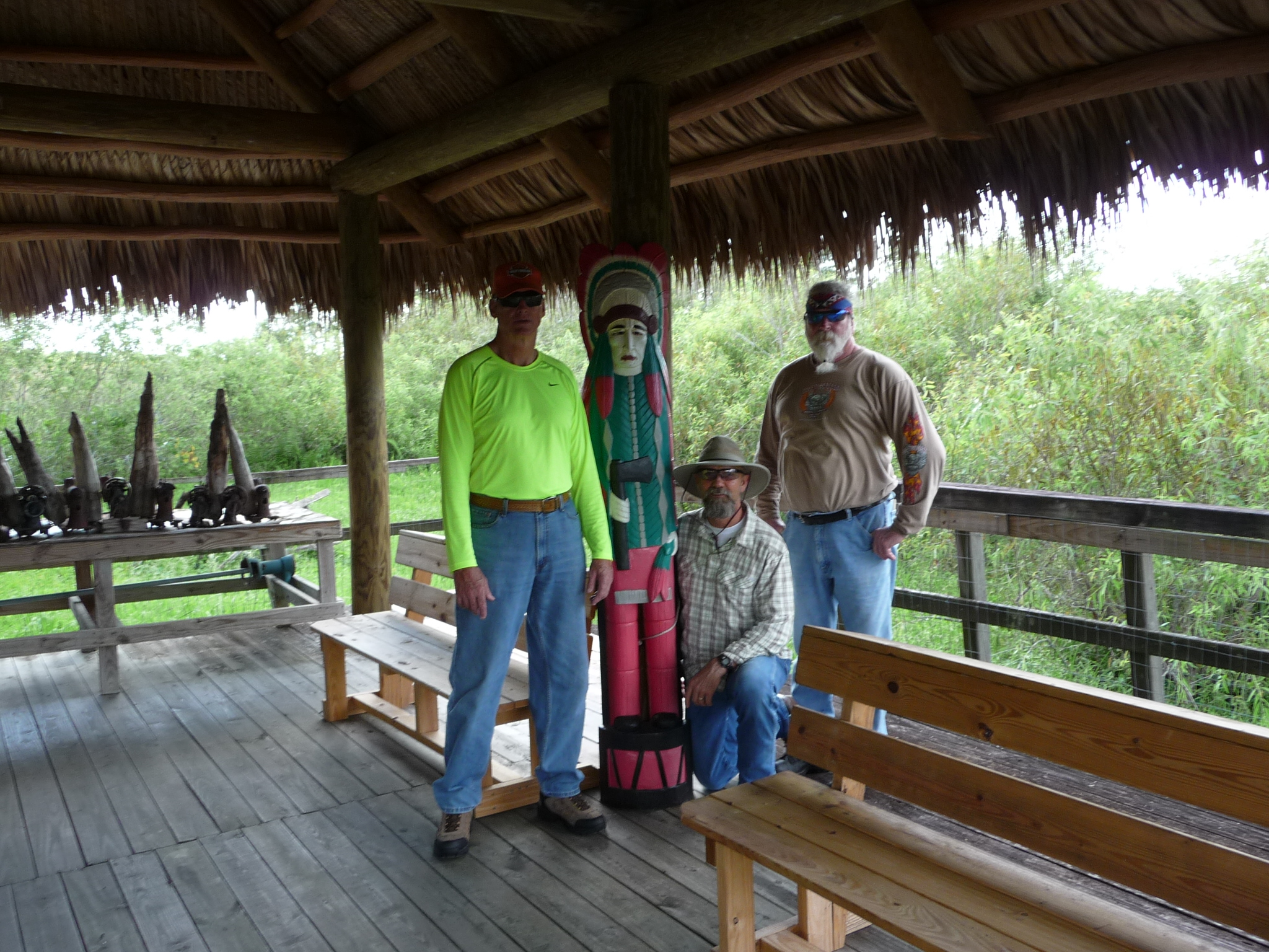 Today we left Homestead rode over to Hwy. 41 knows as the Tamiami Trail and it runs through the Everglades. While crossing we rode the Air Boat at The Miccoskuee Village Center, (Dale and Mike’s first). The guide took us out to a camp in the Everglades which was used by the Miccoskuee Tribe during the period of 1836 – 1866 in order to survive until a peace treaty was sign in 1866. The area is still used today for other events among their tribe. We did see a few alligators mainly hatchlings (babies), the one floating is Sparky a 7 foot and 10 years old gator. I believe Dale and Mike had a great time riding the boat, if I lived in Florida I have my Harley and a Air Boat. After the Air boat we rode 41 to North of Naples and then jumped on 75 for it was safer on the interstate than on 41. Got over to Hwy. 98 rode up to Crystal River, Fl. for the night. Rode 367 miles today and up to date 1433. We are thankful to the Lord’s helping hands and keeping us safe. Tomorrow we are going towards Pensacola, Fl.. Until the next post be safe and enjoy life.