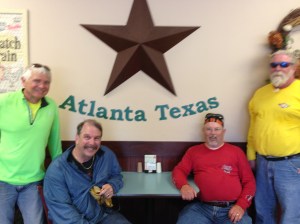 We started the day a little earlier to try and beat the heat, but it still was pretty hot on up in the day. The major roads rode today starting from Ms. I-20, La. highways 80, 79, 352, La.2 and La.1. We had lunch at Giles Snack Shack in Plain Dealing, La. the food was home cooked and outstanding. The locals were very friendly. It was just a touch of old American in modern times. Today was special to have the chance to be touched by life in this manner. Hey Toot Man parts of today reminded me of Bossier City, La.. In Texas we rode 77, 67, 71 and 271 to Paris, Tx.. We made stop in Atlanta, Tx. (ref. the picture). The heat was a major factor, for more water breaks on our travels today. Dale and Susan have rode on to do some other adventures, so please keep them in your prays as you do us. Tomorrow we will ride to Amarillo were I will pick up Michele, so she can ride 3 weeks with me. Mileage for today is 339 and a total of 2521. Mike and I have rode in the following states to date, 1) Ga. 2) Fl.