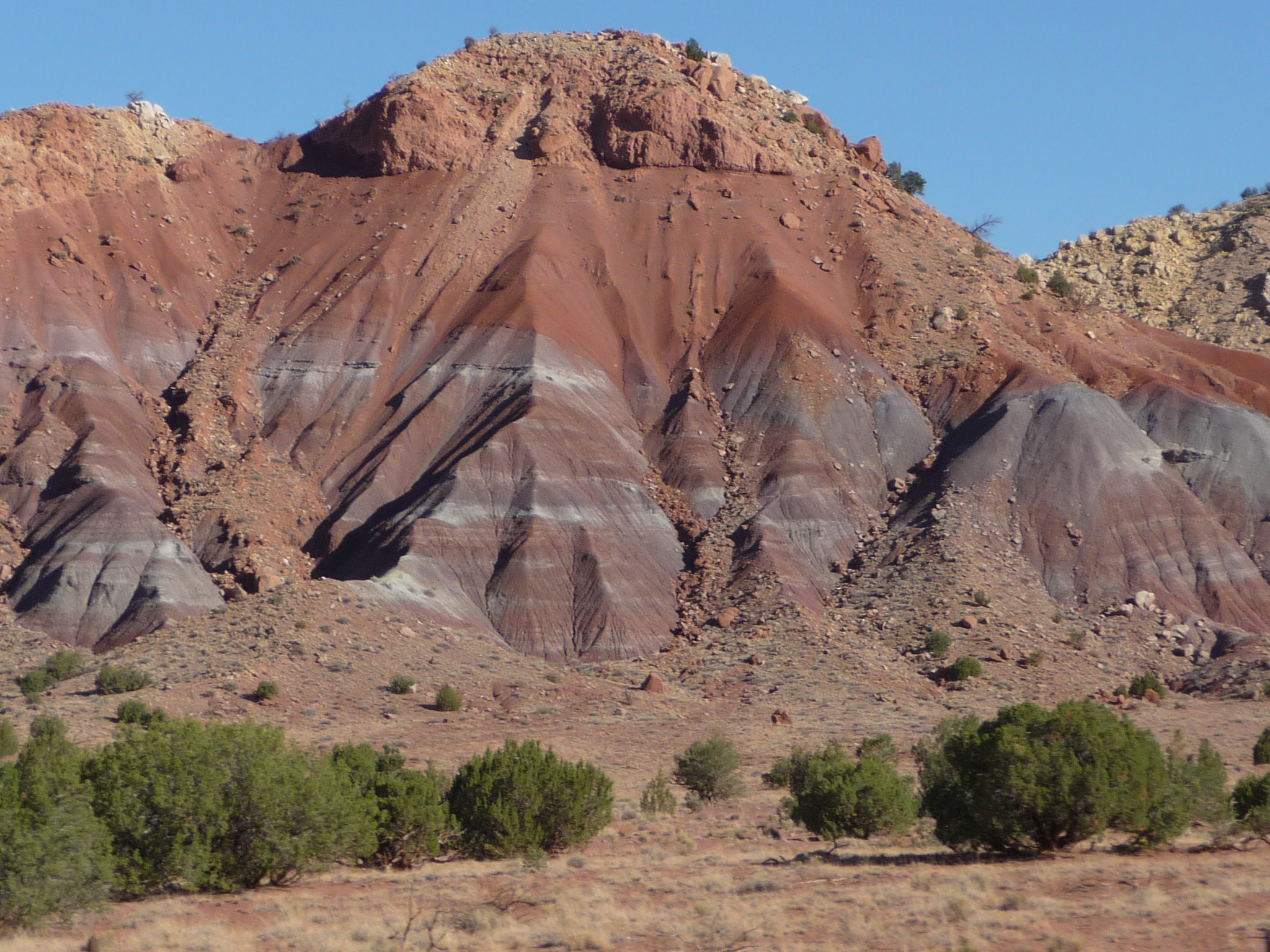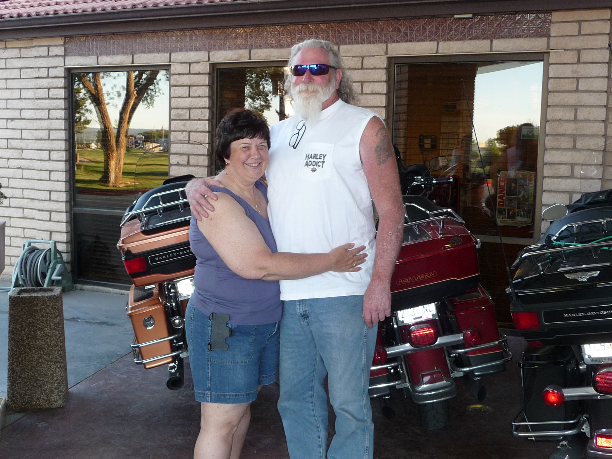 Today we left Santa Fe riding up 84/285 North into Espanola, NM. were we crossed over part of the Rio Grande. Continuing North riding through the San Juan Mountain Range and Carson National Forest. At Chama, NM. we got on 64 west towards Farmington, we stopped for lunch at KB Dillons. Rode 64 on to Shiprock, NM. then North on 491 towards Co. riding through Ute Mountain area. Riding through these mountain’s the beauty and colors are so vibrant. Also remember when you were a child how you lay in the yard and look up into the clouds; seeing animals, faces or some shape well that is what it was like today looking at those rock formations. The areas which we rode through belonging to the Apache, Navajo and the Ute Indians. Check out the sign about falling boulders not just rocks. We made it to Cortez for the evening. Paul will be leaving tomorrow to see family and friends in Arizona. We will be heading to the Four Corners, Monument Valley and The Grand Canyon. Completed 302 miles today and 3657 to date. So keep Paul in your prayers for his travling adventures. So may the good Lord smile on you as you travel through this world.
