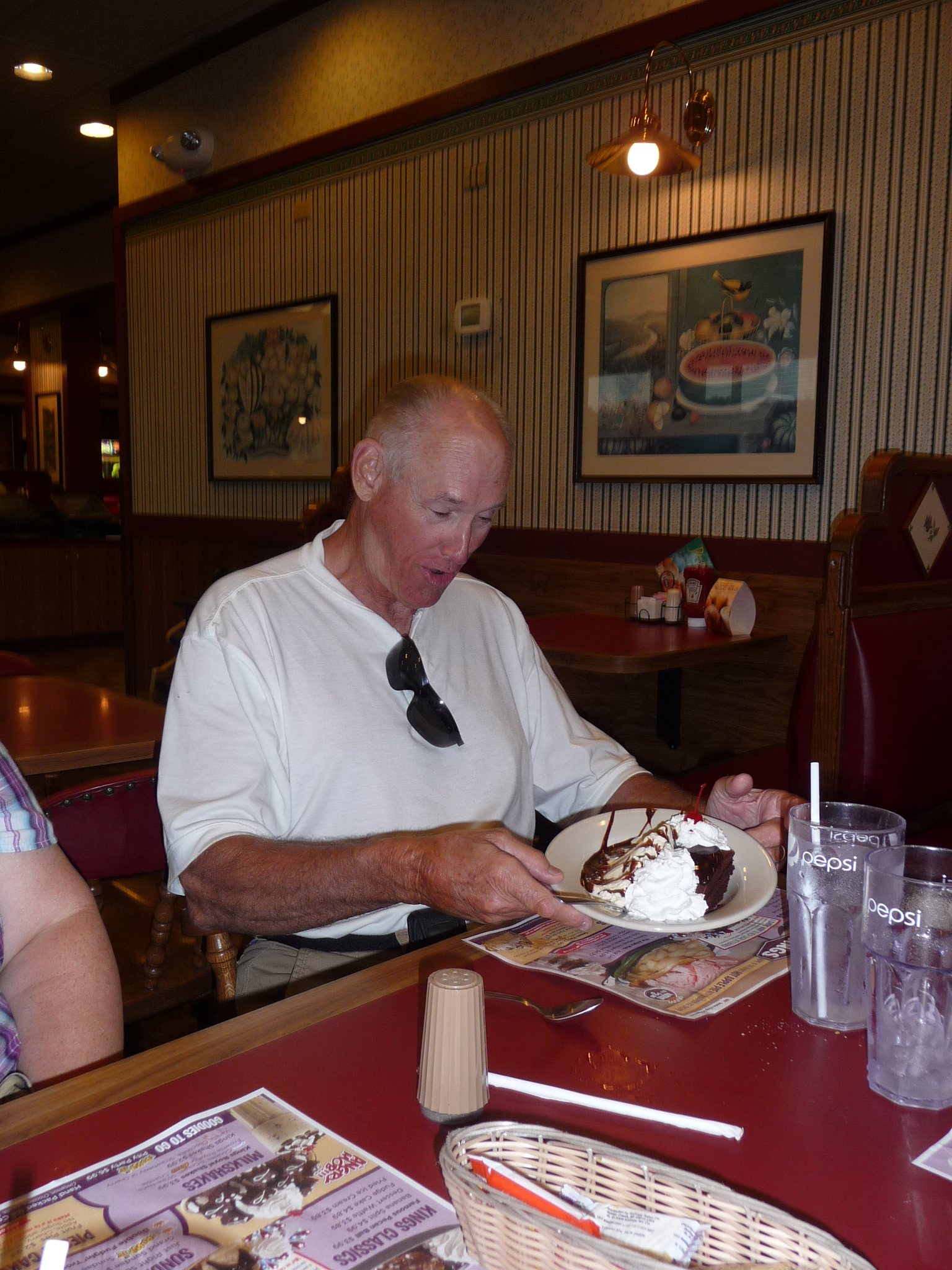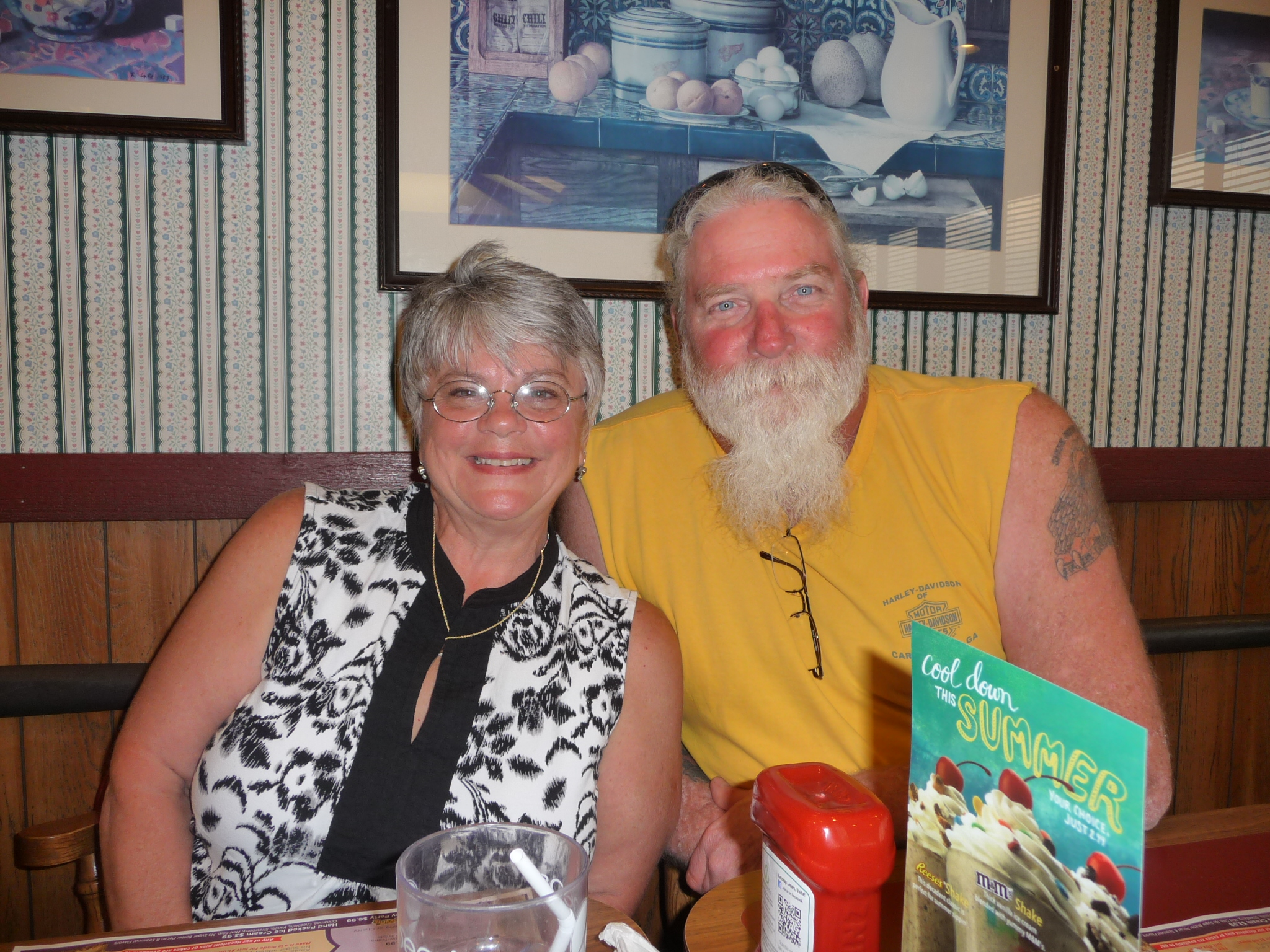 Today was one those easy going type of days you know some down time. We had a late breakfast then we rode up Niles, Ohio to Bike Town Harley Davidson. Afterwards we got back on I-80 East to Hwy I-79 South over Hwy 422 West so that we could meet a friend (Tony) at New Castle Harley Davidson. Tony used to work for Cobb County Govt. before coming back home to care of his Mom. So after as short reunion we headed to Kittanning, Pa. for the rest of the day; Tony had lunch with us before leaving to go get Anna. Tony and Anna return later this evening to have dinner with us, as you may notice Mike’s face when the dessert came out (Kings Family Rest.). Tony will be joining us tomorrow as we start towards Maine. Short distance today 111 miles and a total of 8795. Friends are a blessing and God is good all the time amen.