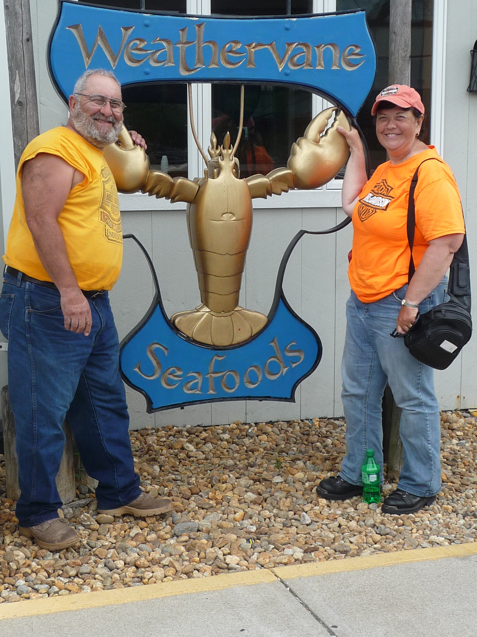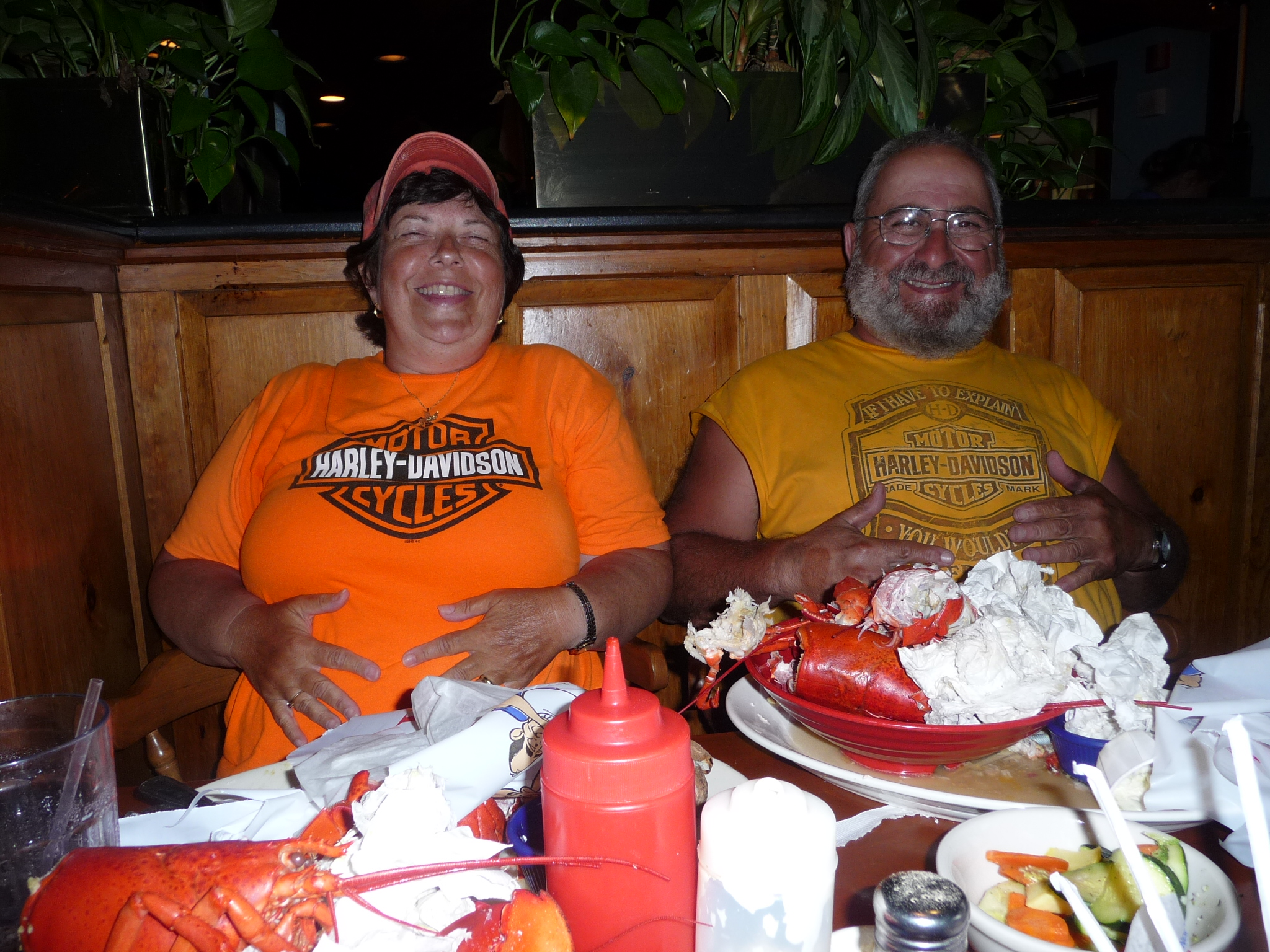 Rode out of Middletown, New York this morning by 84 East into Ct. where we had breakfast at a old style Golden Arches (MCDonalds). After breakfast we headed North on Hwy 8 through Ct. into Ma.. Then we took I-91 North up to Vt. after that we got on Hwy 9 East over to Concord, NH. and out on Hwy 4 East to Maine. The country side was just beautful and breath taking from the lakes, rolling hills and the mountains. Arriving in Maine the first matter at hand was to get Michele and Tony somewhere for lobster. As you might be able to tell that they both seem to be quite satisfied. Mike and I have now riden in the four corner states of the lower fortyeight. Tomorrow we will start our jounery towards Ga. and Tony back to Pa. We now have added the following state Mn., Wi., In., IL., Oh., Pa., Ny., Ct., Ma., Vt., NH.and Maine bring our count to 28. Finished the day with 371 miles and to date 9582. Good times, Good Friends and The Good blessings that our Lord has given us.