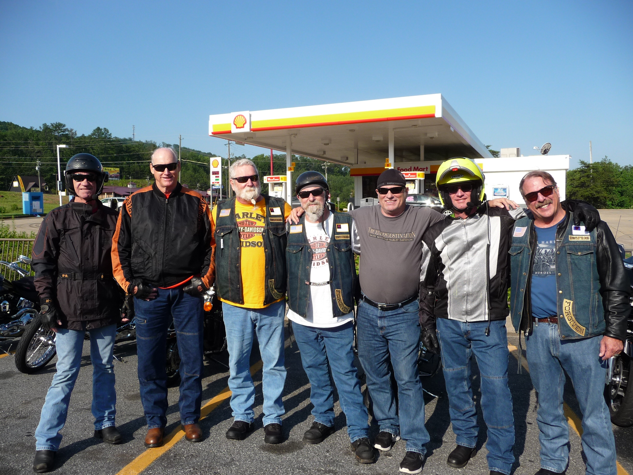 Barrel in Cartersville @ 8:00 am for breakfast. Afterwards around 9:00 am we rode North on Hwy. 411 towards Maryville, TN.. The weather was clear skies of blue with the clouds of cotton lining the heaven above. It was a beautiful day to ride with family and friends. You know no matter how prepared you are sometimes thing just happen. The first thing was a little kickstand failure bike goes down , no one gets hurt and the bike is ok. Just a few mile from downtown Maryville the second adventure of the day occurred when Paul had a front wheel bearing go bad. Paul had to wait on the repairs so Mike stayed, while the rest headed towards Bristol, TN.. We continued on 411 to 383 North, 66 West , 40 North to 81 North. Upon arriving at the hotel Michele noticed oil under my bike which made the third occurrence of the day. Here is the point with all that has happen today no one got hurt. Paul was close enough to a dealership to get the necessary repairs done without having any further damage done to the bike. The oil leak was a loose drain plug easily repair with out any significant oil loss or damage to the motor. We realize thou these things happen that God is still in control and by our sides even when things get difficult or when inconveniences come along. Even in those time there is still things be thankful for and see the blessing in the situation. Like I mentioned above no one got hurt, no real damaged done and everyone arrived safely. Must also give kudos to Smokey Mountain HD for taking care of Paul. Here is a though for today: when conflicts, disagreements and occurrences happen we must do our best to remember that our Heavenly Father is with us and that is the time to draw close to the throne. Today was about a 300 mile day and tomorrow we head to Winchester, VA. for a few days. We will also be meeting my (brother) Tony from PA. there. before riding back on the Sky Line Drive and hopefully the Blue Ridge Parkway.